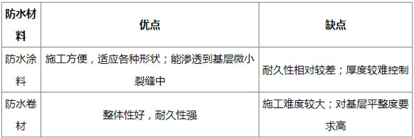 以下是一個對比不同防水材料特點的表格: